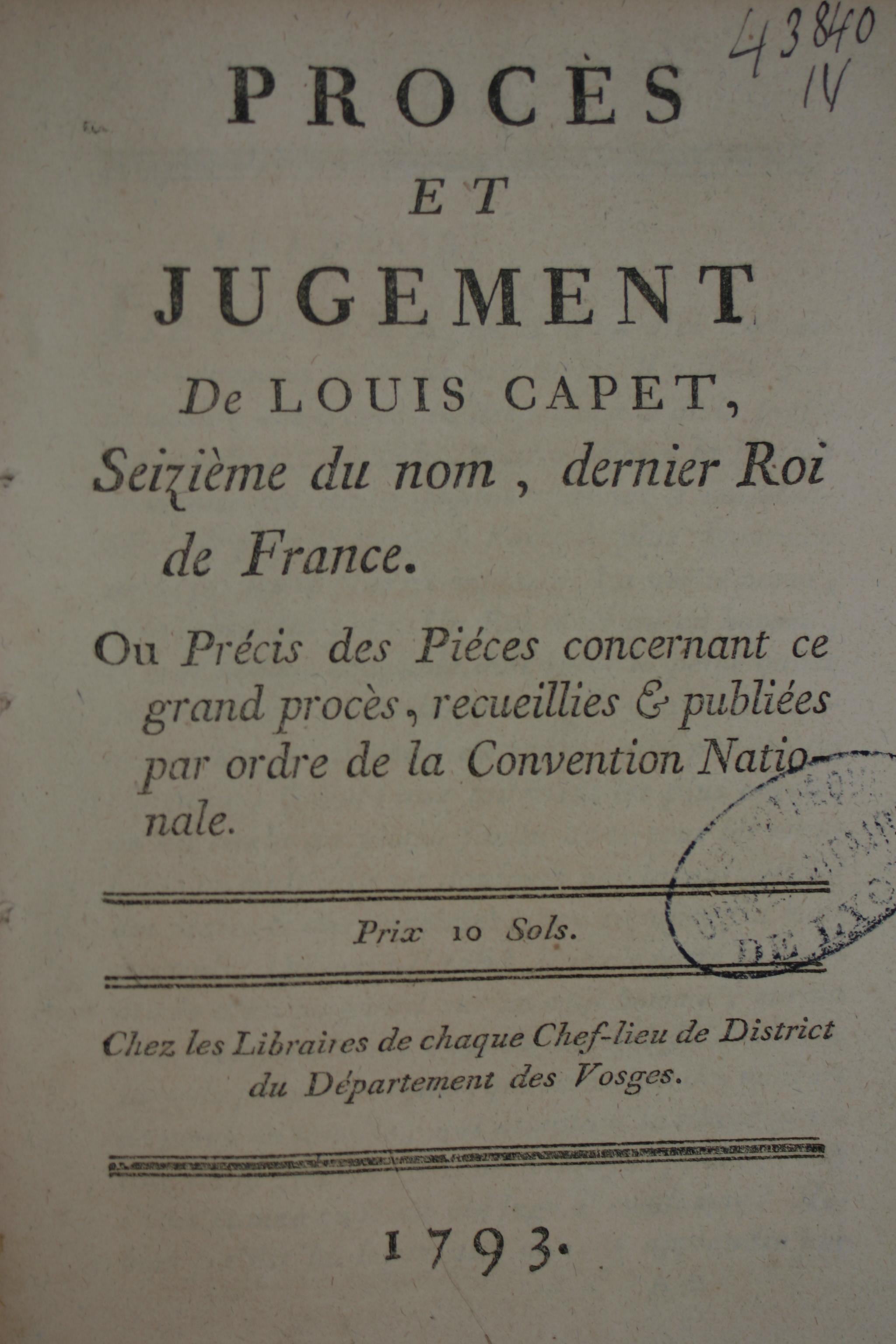 « … ceci est un jugement solennel contre leurs Altesses Royales le Comte de Provence et le Comte d’Artois, malheureusement placés au nombre des ennemis conjurés contre Louis XVI »