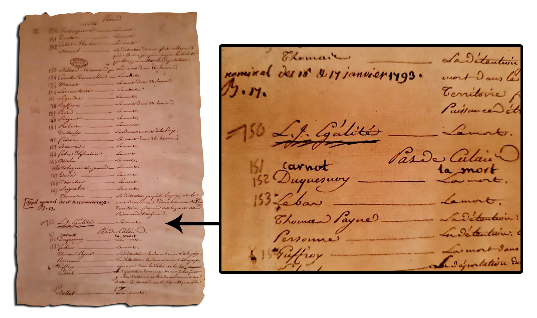 Aucune pièce d’archive ou précision incluse dans quelques Mémoires des témoins de ce temps n’atteste expressément l’incitation – exercée sur Robespierre- à faire monter subitement Philippe Egalité au Tribunal Révolutionnaire et le conduire ainsi à l’échafaud mais… Mais comment se fait-il que de sa prison au Fort Saint Jean à Marseille où il était enfermé, Philippe Egalité fut brusquement reconduit à la Conciergerie le 2 novembre 1793 pour être jugé (pour quelle faute ? on n’en trouva officiellement aucune) puis exécuté le 6 de ce même mois. La Convention avait décidé de seulement l’éloigner de Paris en raison du ralliement de son fils (putatif) Louis-Philippe au Général Dumouriez mais pas de le condamner …
