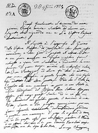 - jugement rendu par la Cour Ecclésiastique de Faenza du 29 mai 1824 ordonnant la rectification de l’acte de naissance de Maria Stella (hier, dite « Chiappini ») 11 avril 1773 et signé par Valerio Boschi, Provicaire général.
