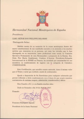 Nous sommes en droit de supposer que Philippe Delorme a été déçu de ne recevoir un titre ou une décoration qui ait le sceau de la légitimité, à savoir, qui soit octroyé par le descendant du dernier Roi légitime de France, Louis XVI !