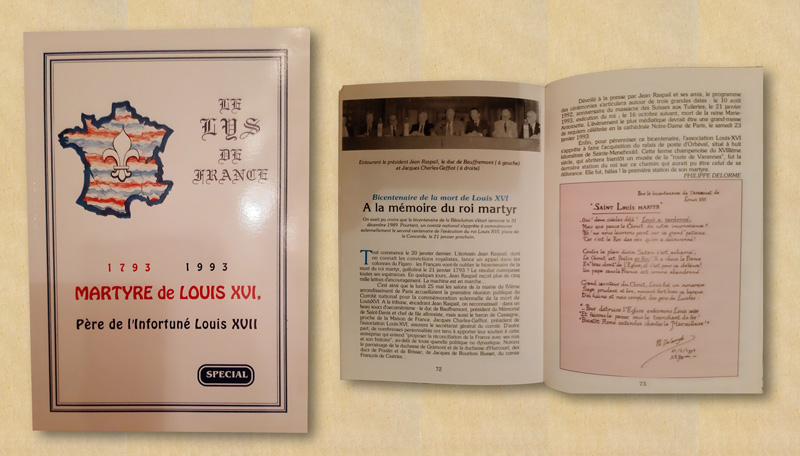 Cette pirouette est telle qu’il prête sa personne à tous les débats offensant la mémoire du Roi-Martyr, écrivant de ci, de là, des articles dans des revues, faisant des conférences dans ce sens odieux, et, bien sûr, en clamant dans un livre burlesque qu’il révèle la vérité sur Louis XVII !