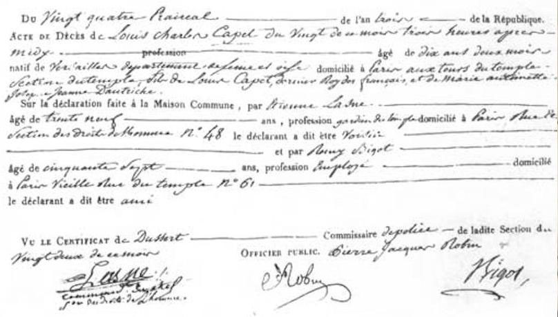 Du 1er au 5 juin 1795, les gardiens de l’enfant malade, Gomin et Lasne, constatèrent une aggravation de la « maladie ».